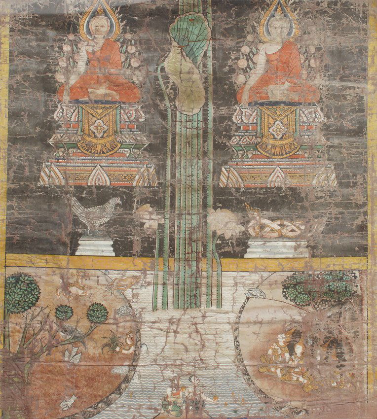 THAI POLYCHROME AND GILT PAINTED THANKA