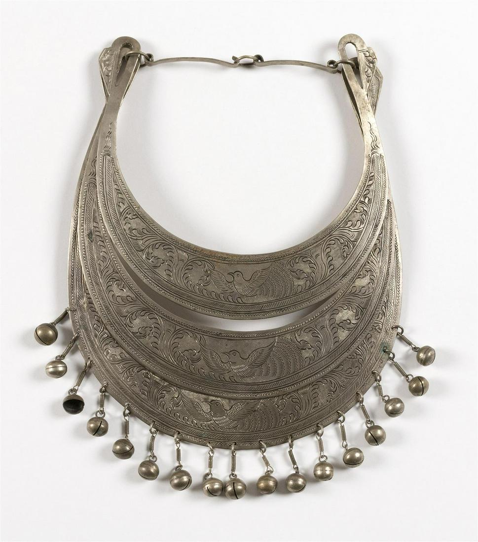 THAI SILVER TRIPLE-GORGET NECKLACE Circa 1900