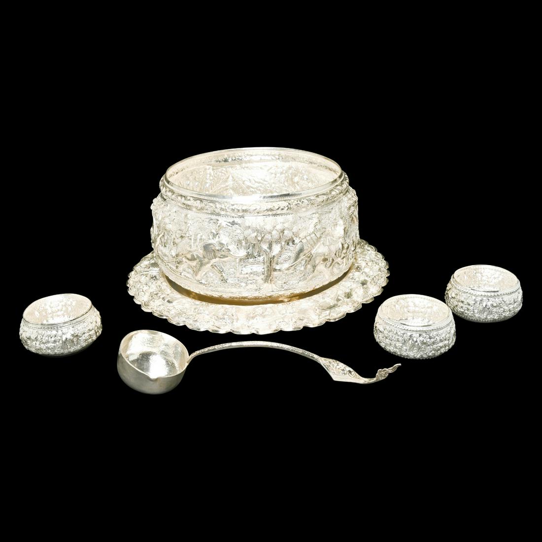 Thai Sterling Silver Punch Bowl Set.