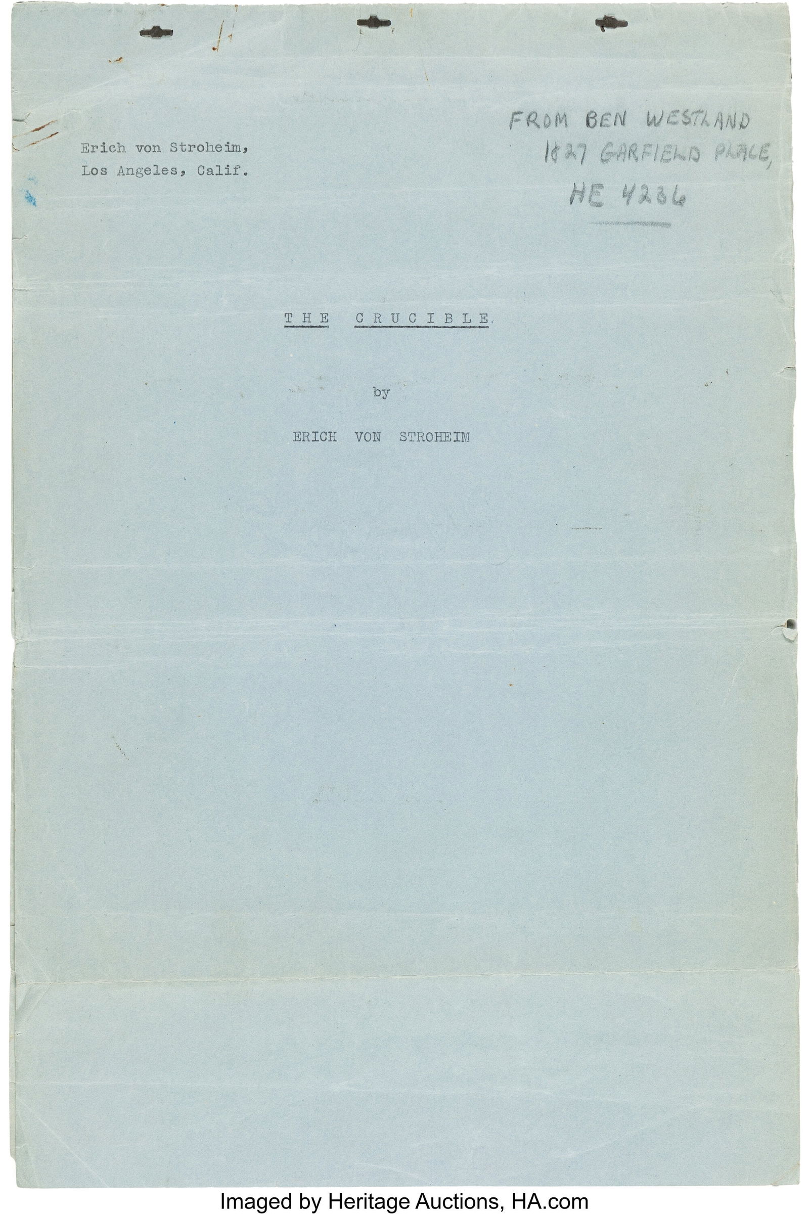 The Crucible (1925), Erich von Stroheim Original