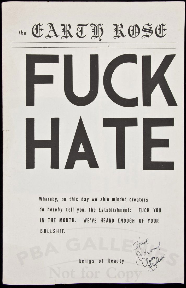 Carl Pope, b. 1961, THE BAD AIR SMELLED OF ROSES, lot of four worksChristian666 - ProclamationMar 20, 2026Jason Hackenwerth, And Then She Said Fuck Off, 20046 days LeftVera Kochubey Neo-Expressionist Painting Devil is Busy Talk to God 59 x 432 days LeftCarlos Bringuier – Cuban Exile & Oswald Adversary – Autographed Anti-Castro PamphletRobert Indiana - Untitled (Love) From BannerMar 26, 2026NEWSPAPERS Votes for Women, 49 loose issues, with a small quantity of other newspapers and magaz...Robert Indiana - When the Word is LoveFeb 26, 2026Jackson Pollock, Composition, Jackson Pollock, The Last Sketchbook, Limited Edition LithographFeb 27, 2026FASTER, PUSSYCAT! KILL! KILL! - One Sheet (27" x 41"); Style B; Very Fine on LinenMar 06, 2026Various Artists, Think American. Group of 6 posters. 1958-1960.Feb 26, 2026Ai Weiwei (Chinese, b.1957) FUCK (scarf)Feb 26, 2026Jackson Pollock, Composition, Jackson Pollock, The Last Sketchbook, Limited Edition LithographMar 14, 2026John F. Kennedy – 1960 Presidential Campaign – Official Headquarters Stationery SheetDesigner Unknown, Can You Afford To Make Enemies? / Make Friends - Keep Friends. 1923.Feb 26, 2026Jackson Pollock, Composition, Jackson Pollock, The Last Sketchbook, Limited Edition LithographMar 21, 2026