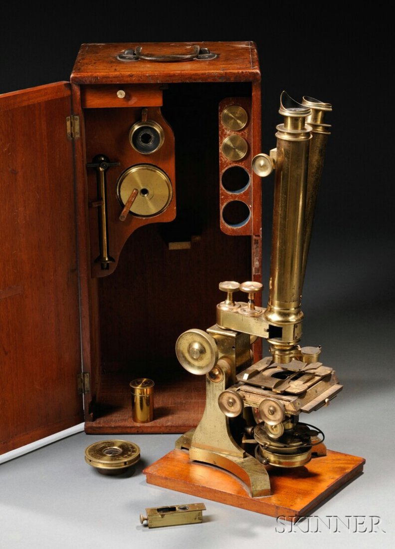 H Crouch Binocular Microscope w Petrographic Prisms2 days LeftCASED BRASS ROSS-TYPE STEREOSCOPIC BINOCULAR MICROSCOPE England, Late 19th Century Microscope heightMar 12, 2026CASED M. PILLISCHER BRASS MONOCULAR MICROSCOPE London, Mid-19th Century Microscope height approx.Mar 12, 2026CASED BOSTON OPTICAL WORKS TOLLES MICROSCOPE Mid-19th Century Case height 16.25". Width 6.75". DepthMar 12, 2026CASED J. ZENTMAYER BRASS MONOCULAR MICROSCOPE Philadelphia, Late 19th Century Case height 11.5".Mar 12, 2026CASED BAUSCH & LOMB MICROSCOPE New York, Early 20th Century Case height 15". Width 8.25". DepthMar 12, 2026ANTIQUE BAUSCH & LOMB MICROSCOPE, C. 19154 days LeftBox-Base Cary-Type Compound Microscope, c. 1840Mar 14, 2026RARE SOLAR MICROSCOPE BY W & S JONES London, Late 18th Century Case height 3". Width 10.75". DepthMar 12, 2026Very Early Compound Microscope by Carl Zeiss in Jena, 1864Mar 14, 2026Ernst Leitz Wetzlar Ortholux Binocular Compound MicroscopeMar 18, 2026Microscope by G. & S. Merz, Munich, c. 1860–70Mar 14, 2026CASED BAUSCH & LOMB PHYSICIAN'S MODEL MICROSCOPE New York, Late 19th Century Microscope height 12".Mar 12, 2026French Compound Brass Microscope by Nachet, c. 1875Mar 14, 2026CASED BRASS MONOCULAR MICROSCOPE Mid-19th Century Case height 4.5". Width 11". Depth 5.5".Mar 12, 2026CASED SMITH & BECK MICROSCOPE London, Mid-19th Century Case height 6.25". Width 17". Depth 9".Mar 12, 2026