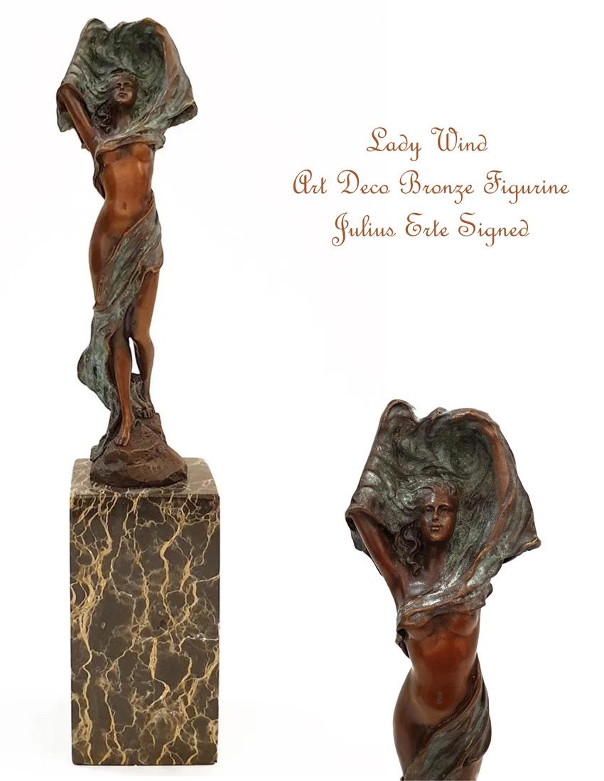 The Lady Wind, A Julius Erte Signed Bronze Statue