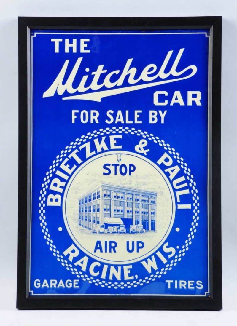 SoldAntique SST Mitchell Car Co. Advertising SignAntique single sided tin The Mitchell Car For Sale By Brietzke & Pauli Racine, Wis. Embossed Dealer Advertising Sign. The Mitchell Car Company was in business from 1903-1923. The sign is in good condiSee Sold Price