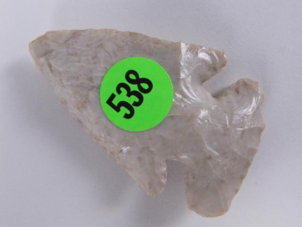 Sold3 1/4" x 2 3/16" Thebes. Rogers COA. Fayette County Illinois. White to Light Gray Burlington Chert.3 1/4" x 2 3/16" Thebes. Rogers COA. Fayette County Illinois. White to Light Gray Burlington Chert.See Sold Price