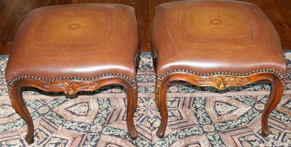 THEODORE ALEXANDER WALNUT, LEATHER OTTOMANS
