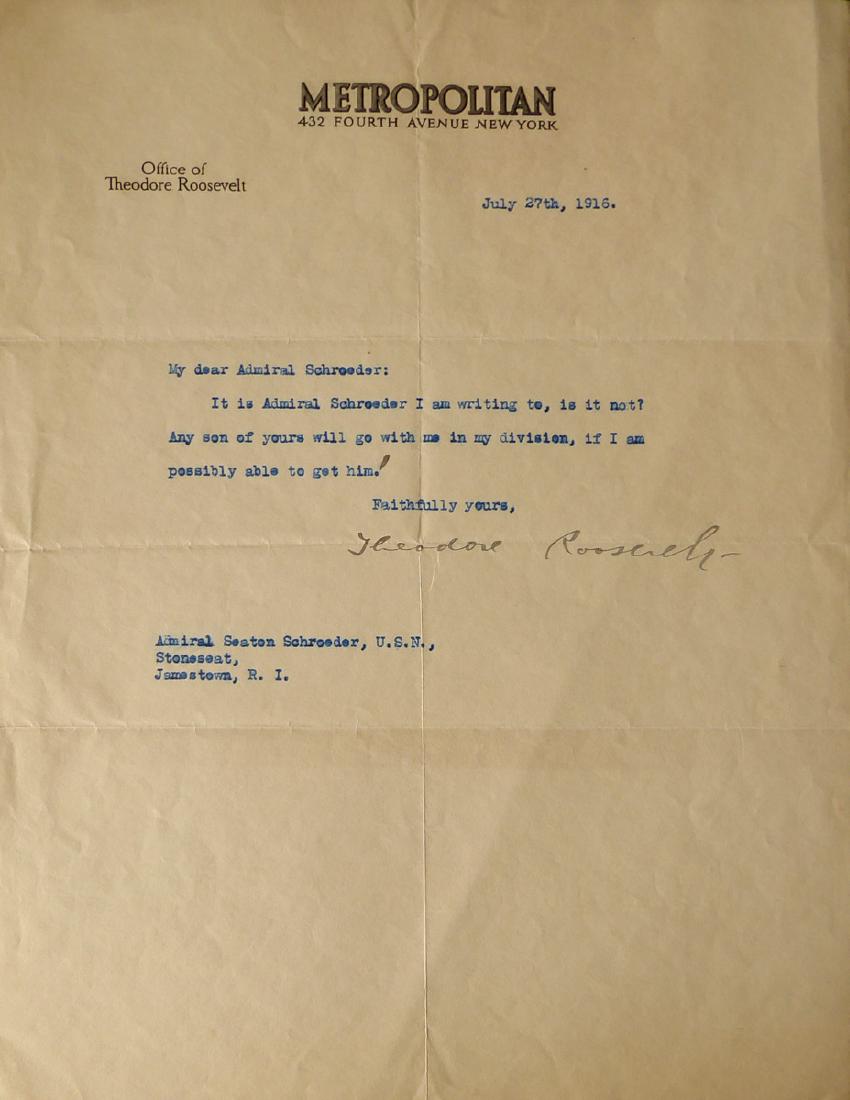 THEODORE ROOSEVELT - Typed Ltr Signed
