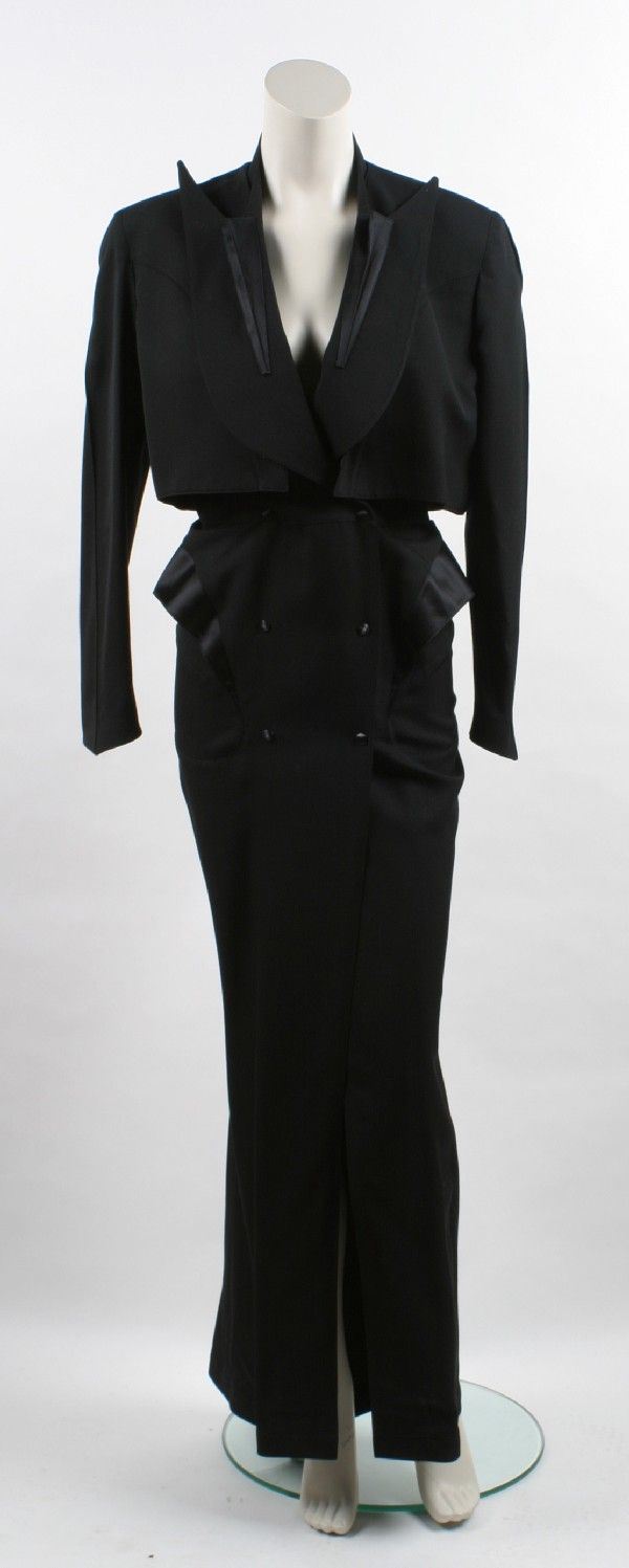 ISSEY MIYAKE, BLACK SCULPTURAL TRENCH COATTHIERRY MUGLER: MINT GREEN BLAZER WITH ACRYLIC DETAILVintage 1990s Valentino Black Shawl Collar JacketFeb 28, 2026Vintage 1990s Giorgio Armani Silk Wool Stripe SuitFeb 28, 2026CHANEL, NAVY BOUCLÉ TWEED JACKETBALENCIAGA, BLACK LEATHER MOTO JACKETVintage Collegian of California Belted Women's Knit Jacket, c. 1970sFeb 24, 2026Lauren Ralph Lauren Black Tuxedo, Made in CanadaFeb 24, 2026DSquared DS2 Sleeveless Black Wool Knit Elasticated Mini Dress size M w. ZippersNeil Barrett Black Off Shoulders Ruffled Loose Mini Dress size SGIORGIO ARMANI: BLACK SILK RIBBED EVENING JACKETBurberry London Black Nova Check Plaid Belted All Weather Jacket Coat1 hr LeftGIORGIO ARMANI: GRAY PINSTRIPE SUIT WITH CHIFFON RUFFLE DETAILChanel Boutique for Bergdorf Goodman Ivory SuitFeb 25, 2026Vintage 1990s Karl Lagerfeld Convertible DressFeb 28, 2026Ferragamo Dress and Jacket, Size 42Feb 26, 2026