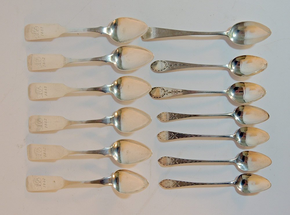 Lot Of Six Mixed Pattern Sterling Silver Teaspoons2 days LeftLot Of Six Mixed Pattern Sterling Silver Teaspoons2 days LeftPENNSYLVANIA COIN SILVER TEASPOONS, LOT OF 196 days Left19PC LOT OF STERLING AND SILVER SPOONS, 25 T.O.W.Mar 07, 2026DELAWARE AND WASHINGTON, DC COIN SILVER TEASPOONS, LOT OF EIGHT6 days LeftNEW ENGLAND AND OTHER AMERICAN COIN SILVER AND RUSSIAN 0.875 SILVER TEASPOONS, LOT OF 176 days LeftLot of sterling silver spoon sets. To include: 1) Towle set of 12 teaspoons. 6.2 ozt. 2) Durgin set3 days Left(7) AMERICAN COIN SILVER LOTMar 15, 2026(12) AMERICAN COIN SILVER MUSTARD SPOONS LOTMar 15, 2026Lot of 14 Sterling Silver Spoons, Assorted Patterns, 355 Grams TotalMar 15, 2026(6) AMERICAN COIN SILVER TEASPOONSMar 15, 2026(10) AMERICAN COIN SILVER TEASPOONSMar 15, 2026(8) AMERICAN COIN SILVER TEASPOONSMar 15, 2026(8) AMERICAN COIN SILVER TEASPOONSMar 15, 2026(11) AMERICAN COIN SILVER TEASPOONSMar 15, 2026(12) AMERICAN COIN SILVER TEASPOONSMar 15, 2026