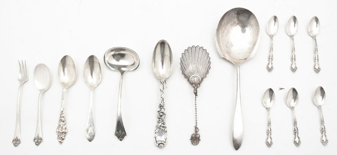 9PC LOT OF STERLING SILVER, 22 T.O.W.Mar 07, 2026FRANCIS HIGGINS STERLING SILVER UTENSILS LOT OF 64 days LeftFRANCIS HIGGINS STERLING SILVER UTENSILS LOT OF 64 days LeftFRANCIS HIGGINS STERLING SILVER UTENSILS LOT OF 64 days LeftFRANCIS HIGGINS STERLING SILVER UTENSILS LOT OF 64 days LeftLot of silver utensils. To include: continental lion handle spoon, shaped bowl serving spoon,Mar 01, 2026Eight Vintage Eternally Yours Silverplate Silverware2 days LeftA Collection of American and English Sterling FlatwareFeb 21, 2026Fifty one American, English and French Sterling flatware and Serving PiecesFeb 21, 2026Collection of Sterling and Coin Silver Flatware23 hrs LeftCollection of Coin and Sterling Silver Spoons23 hrs LeftGroup of American Silver Flatware20 hrs LeftThirteen Coffin End Coin Silver Tablespoons4 days LeftCollection of silver spoons and serving utensils. To include: 2 sterling cheese scoops, gilt shellMar 01, 2026A Collection of Sterling flatware including S Kirk in Various Rose PatternsFeb 21, 2026Group of English and American Silver Flatware20 hrs Left