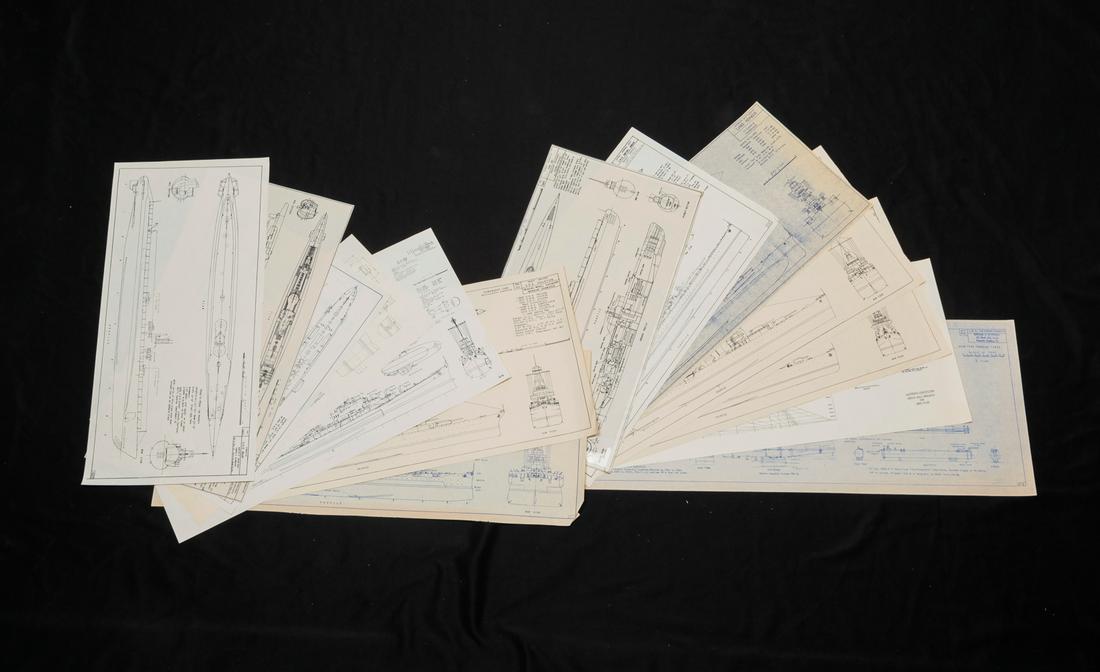 THIRTEEN ASSORTED SHIP PLAN PRINTS.