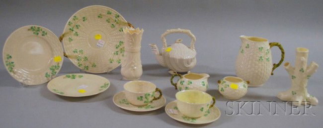 Thirteen Belleek Porcelain Table Items and Teawar