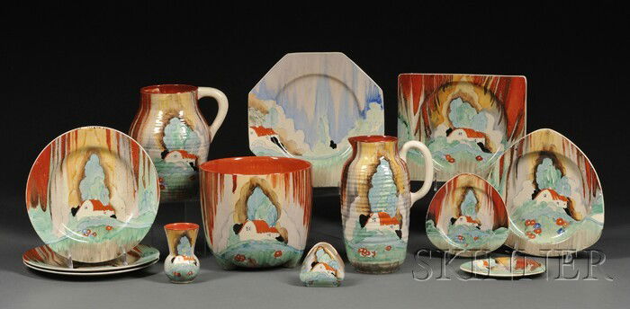 Thirteen Clarice Cliff Newlyn Pattern Pottery Item
