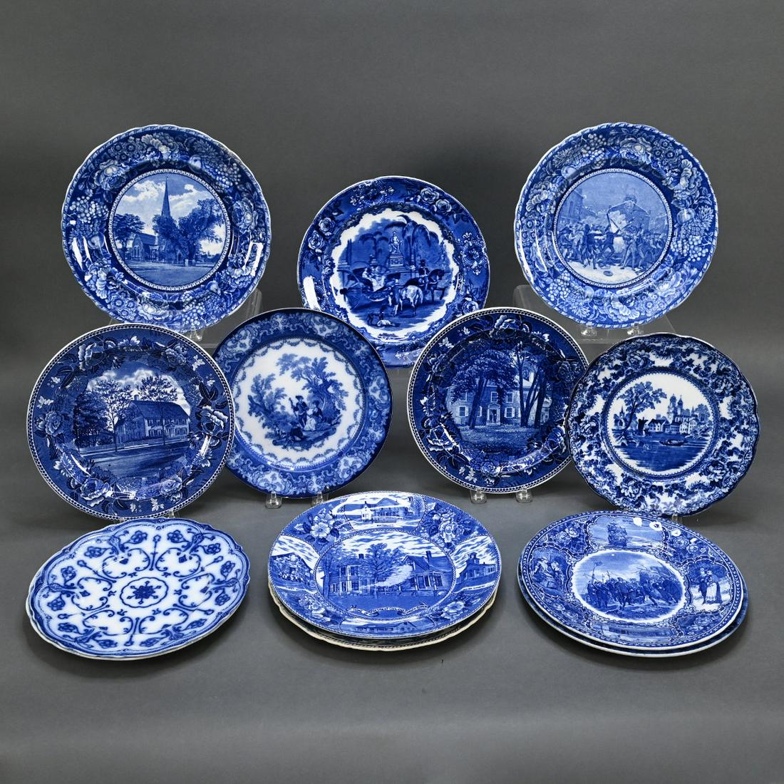 Thirteen Historical Transfer And Flow Blue Plates