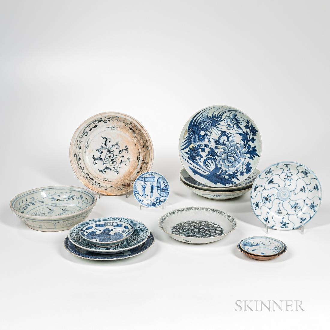 Thirteen Mostly Export Shipwreck Blue and White Dishes