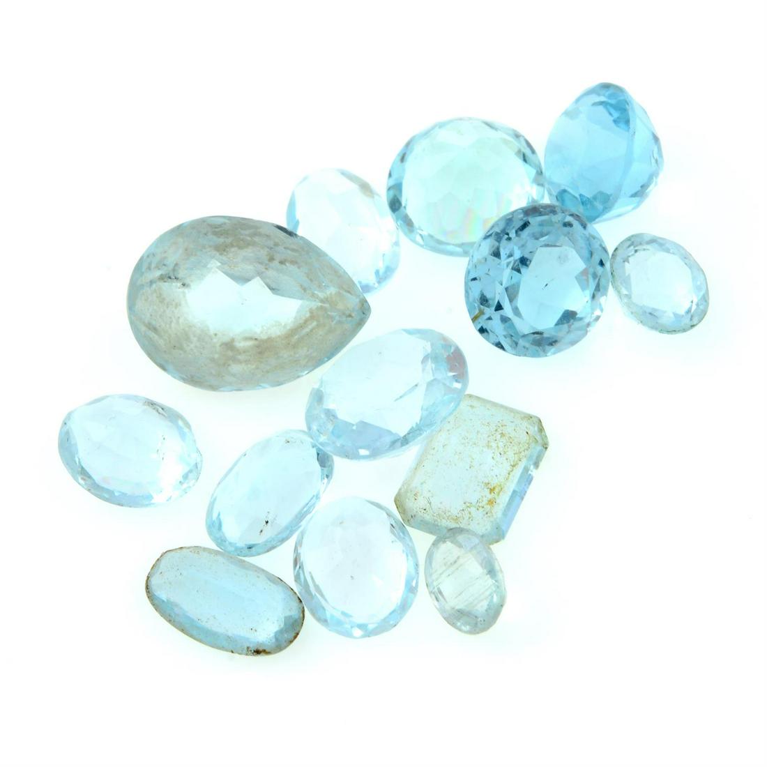 Thirteen vari-shape aquamarines, weighing 19.93cts.