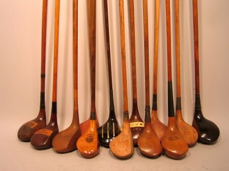 Thirteen various hickory shafted woods