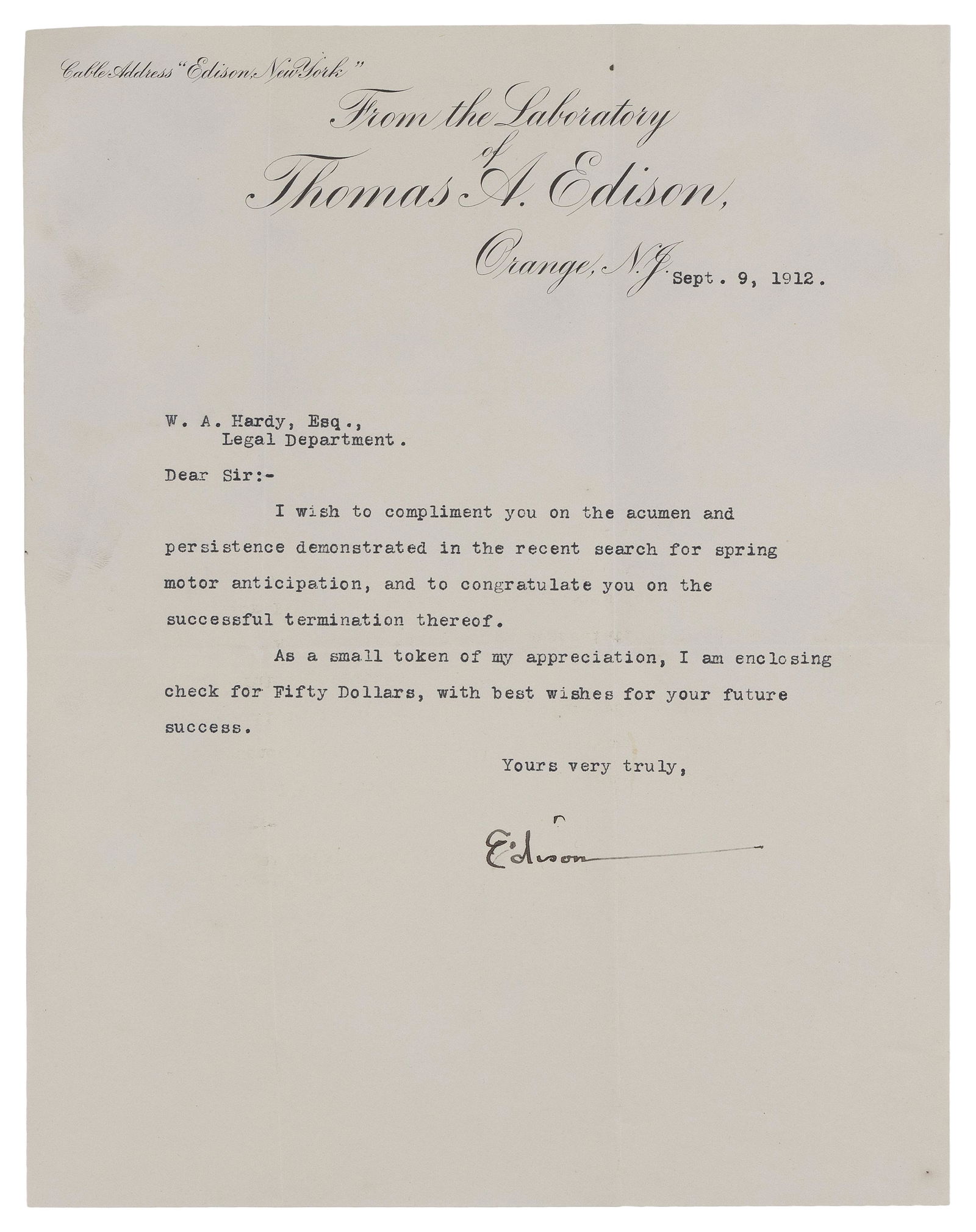 THOMAS A. EDISON ALS Dated 1912 8.5” x 11”.