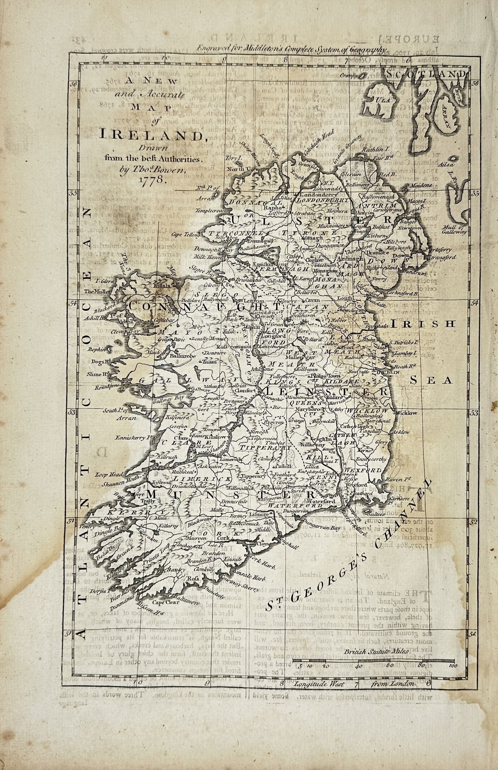 Thomas Bowen – Antique Map - Ireland – 1778