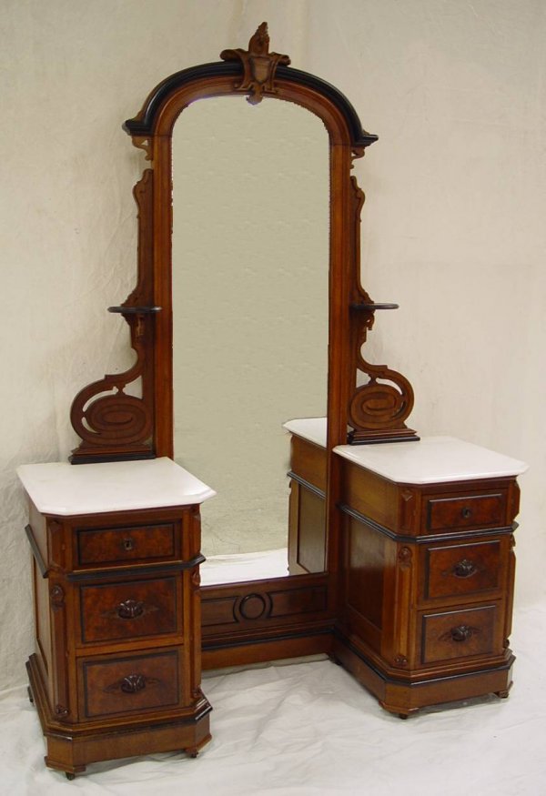 THOMAS BROOKS WALNUT DRESSING MIRROR WITH MARBLE T