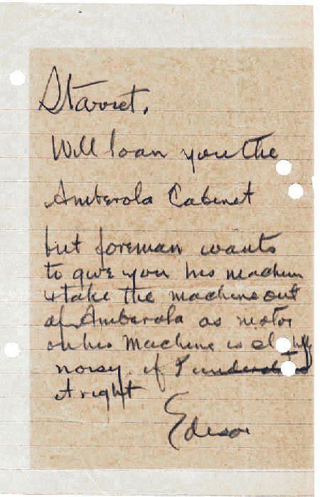 Thomas Edison Phonograph Letter Signed UACC