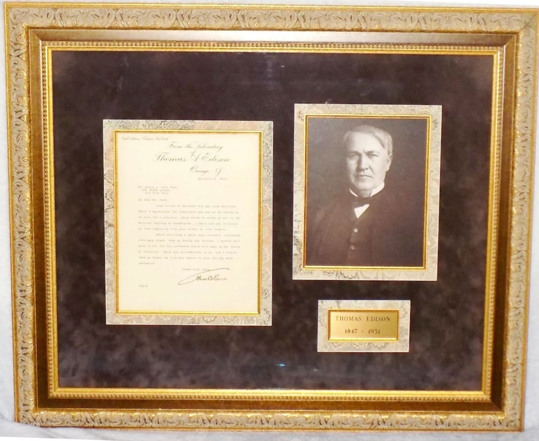 Thomas Edison Signed 8x10 Framed Photo To N.M. Rice Beckett COA8 hrs LeftThomas Jefferson 1796 Signed Document w/Three T.J. Autographs & Two Thomas Bell Signatures FramedMar 29, 2026Autograph, William Henry Harrison, dated 1795, framed as a collage with a image & plaque, 13.25" byMar 09, 2026Framed Abraham Lincoln & William Seward Signed Ship's Passport Document with Beckett COA2 days LeftJohn Adams 1817 Correspondence to Commodore William Bainbridge Framed Signature AutographMar 29, 2026Eliphalet Remington Signed Bank Check Custom Framed PSA 9 Display2 days Left1850's autograph Edmund Ruffin on parchment1 day LeftDocument signed by John Quincy Adams, in collage form with print, document pertains to land, datedMar 09, 2026Alexander H. Stephens CSA VP inscription signature1 day LeftTheodore Roosevelt Signed Appointment Document Custom Frame JSA Authenticated2 days Left[LINCOLN, Abraham (1809-1865)]. EDISON, Thomas Alva (1847-1931). Autograph note signed ("Thomas A.Mar 26, 2026Thomas Edison Signed Album Page Orange New Jersey BAS Slabbed1 day LeftGeorge Huntington Hartford Signed Framed Stock Certificate BAS Certified 9.5x16Mar 10, 2026Theodore Roosevelt Signed Appointment Document Custom Framed JSA AuthenticatedMar 14, 2026Theodore Roosevelt Signed USPS Document Custom Framed JSA Authenticated1 day LeftTheodore Roosevelt Signed USPS Document Custom Framed JSA AuthenticatedMar 13, 2026