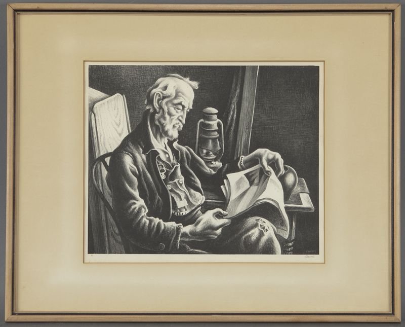 Thomas Hart Benton, "Old Man Reading" lithograph,