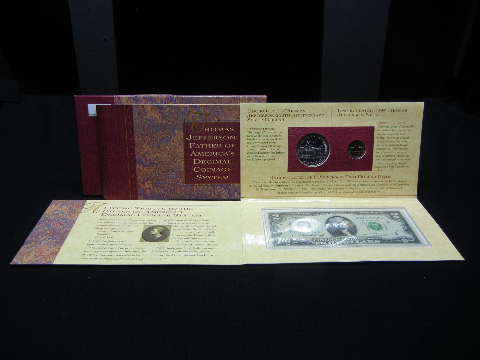 LOT OF US LINCOLN HEAD CENT AND JEFFERSON NICKEL COINSMar 08, 2026US 1938-1961 Jefferson Nickel Collection, Cupro-Nickel and SilverUS Presidential Dollar, State Quarter, and Roosevelt Dime Albums and Mint Sets2 days Left2013 United States Mint Presidential $1 Coin Proof Set COA3 days LeftBuffalo Jefferson Liberty Nickel Collection Lot of 21 Twenty One Nickels Coins SetJun 27, 2025US Mint Thomas Jefferson Coinage and Currency Coin Set OGP5 hrs Left(2) United States Mint Thomas Jefferson Coinage & Currency Sets3 days Left1851-56 Issue 22kt Gold Replica Trio Franklin Washington Jefferson4 days LeftVarious One Dollar U.S. Coins - Presidential, Sacagawea, Susan B Anthony3 days Left1904 Louisiana Purchase Exposition 22kt Gold Replica Pair Livingston Jefferson4 days Left2010 S US Mint Proof Set, OGP/COA, Contains 14 Coins; Original Coinage, Presidential Dollars, and3 days LeftMany U.S. Coin Sets, Collections, Etc.3 days Left1938-1980 Near Complete Jefferson Nickel Whitman Coin Album 41 CoinsMar 06, 2026US Coin Collection Roosevelt Dimes Jefferson Nickels Washington Quarters Set 40 CoinsJul 08, 2025US 1993-S Thomas Jefferson 250th Anniversary Silver Dollar, KM-247, Proof2011 S US Mint Proof Set, OGP/COA, Contains 14 Coins; Original Coinage, Presidential Dollars, and3 days Left