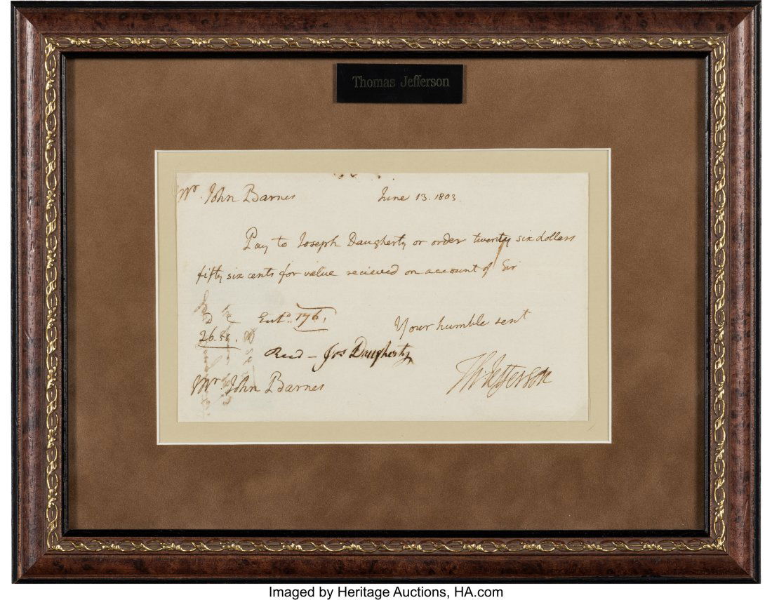 Thomas Jefferson 1796 Signed Document w/Three T.J. Autographs & Two Thomas Bell Signatures FramedArarity Auctions4.6(206)$325(2 bids)Mar 29, 2026