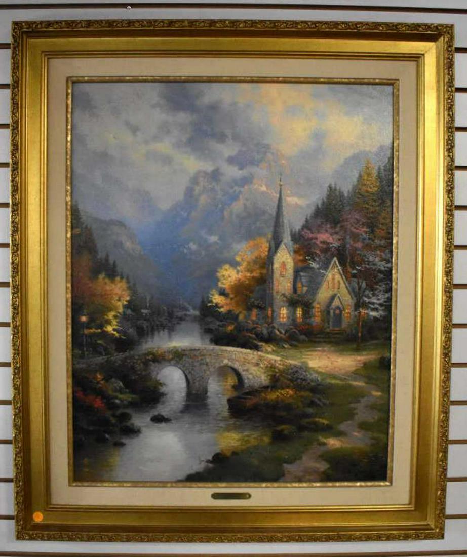 Thomas Kinkade- Hand Embellished Giclee on Canvas "Mickey and Minnie Sweetheart Holiday"4 days LeftThomas Kinkade- Hand Embellished Giclee on Canvas "The Evil Queen"12 hrs LeftThomas Kinkade- Hand Embellished Giclee on Canvas "Beauty and the Beast's Winter Enchantment"12 hrs LeftThomas Kinkade (1958-2012), "The Mountain Chapel" Framed Limited Edition Lithograph, Numbered and12 hrs LeftFramed S&N Thomas Kinkade Mountain Majesty R/E Print3 days LeftThomas Kinkade Seaside Hideaway Limited Edition Canvas 301/2450 Signed and Framed Remarqued13 hrs LeftThomas Kinkade End of A Perfect day12 hrs LeftThomas Kinkade (American, 1958–2012), “Mountain Retreat"Mar 07, 2026Thomas Kinkade (1958-2012), "Teacup Cottage" Framed Limited Edition Lithograph, Numbered and Signed4 days LeftThomas Kinkade (1958-2012), "Seaside Hideaway" Framed Limited Edition Lithograph, Numbered and12 hrs LeftThomas Kinkade (1958-2012), "Village Christmas" Framed Limited Edition Lithograph, Numbered and2 days LeftThomas Kinkade (1958-2012), "Lakeside Hideaway" Framed Limited Edition Lithograph, Numbered andMar 05, 2026THOMAS KINKADE (1958-2012) LITHOGRAPH TITLED LAMPLIGHT MANOR, 28IN X 33IN (71cm x 84cm)3 days Left"OPEN GATE" BY THOMAS KINKADE LINTED GICLEE ON CANMar 08, 2026Thomas Kinkade "Bridge of Faith" Oil on Canvas6 days LeftThomas Kinkade Cobblestone Brooke 1997 Large Lithograph FramedMar 09, 2026