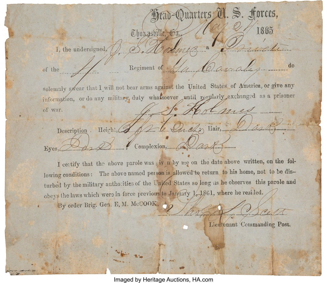 Frederick Soulie Sergeant 5th Mass AppoinmentMar 02, 2026Civil War Ohio Military Commission, 18631 day LeftEdward Thacker Confederate Discharge Doc. KIAMar 02, 2026Abraham Lincoln Military Appointment Signed. One5 days LeftFranklin Pierce Signed Appointment4 days LeftMass. Letters: Battle of New Orleans, Army Life, etc.Mar 02, 2026ROBERT E LEE AUTOGRAPH LETTER SIGNED.Mar 01, 2026Charles Devens & Civil War & Post-war LettersMar 02, 2026Ulysses Grant Signed Official Decree For Pardon4 days LeftAndrew Johnson Military Commission Signed. One5 days LeftQuartermaster's Store, & other Mass DocumentsMar 02, 20265 Page Confederate Letter: Battle of Manassas etc.Mar 02, 2026William Thornton 1817 Washington DC Capital Architect Signed Manuscript Document Richard Bland LeeMar 29, 2026WARTIME ROBERT E LEE SIGNED MANUSCRIPT CIRCULAR.Mar 01, 20261863 Clothing lost in Battle documentMar 02, 20261864 Discharge for Park Battery (PA) soldier, etc.Mar 02, 2026