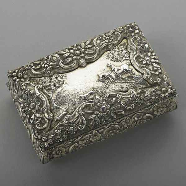 Silver Buckle & Cigarette Case12 hrs LeftA RARE AND IMPORTANT WOOD AND SILVER REPOUSSÉ SUTRA COVER AND MANUSCRIPT, 18TH-19TH CENTURYMar 11, 2026Vintage Silver Plate Jewelry BoxMar 10, 2026Russian Silver Cigarette Case7 days LeftGorham Art Nouveau Sterling Silver Cigar Card Box 1900sMar 04, 2026Antique Russian Silver Cigarette Case7 days LeftRussian Silver Cigarette Case7 days LeftAmerican Silver-Tone Metal Cigarette CaseMar 04, 2026A Russian 84 Silver Cigarette Box3 days LeftRUSSIAN SILVER CIGARETTE CASE, ALEXANDER II, fr. SOTHEBY'sMar 21, 2026Qajar Silver and Silver-Gilt Cigarette Box, PersiaMar 15, 2026950 Silver Engraved Snuff Box, c. 1820, B&M Maker's Mark with Clover DeviceMar 08, 2026Silver Cigarette Box12 hrs LeftNathaniel Mills Birmingham English Sterling Silver Vinaigrette Box 18364 days LeftSilverplated Dresser BoxMar 04, 2026English Sterling Silver Cigarette Case with Wood Insert4 days Left