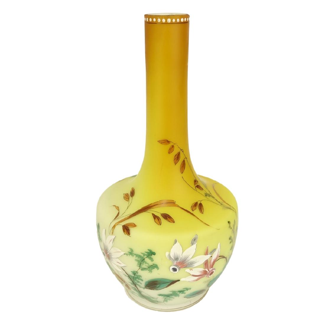 SoldNicely enamel decorated Thomas Webb art glass vaseNicely enamel decorated Thomas Webb art glass vase. With enamel decoration and butterfly. No signature. Beautiful colors. 9 1/8 inches tall x 5 ¾ at widest pointSee Sold Price