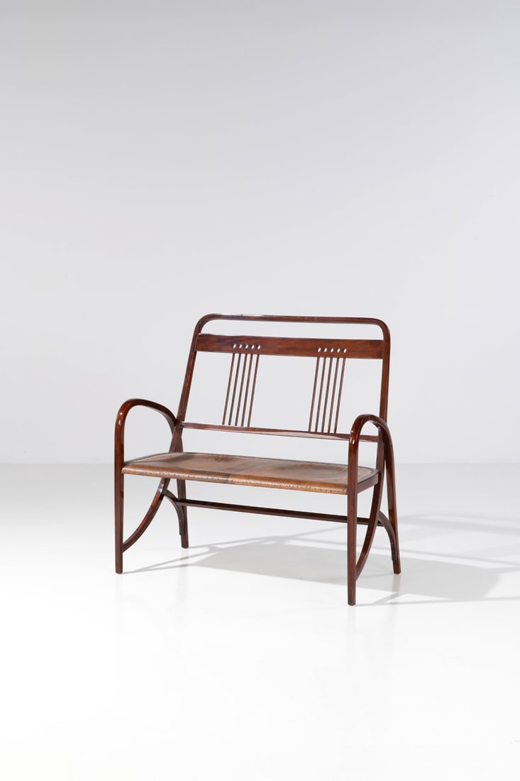 A LACQUERED WOOD AND UPHOLSTERED SETTEE DESIGNED BY THONET C 1900. THIS IS A MODERN AUTHORIZEDKamelot Auctions4.4(346)$7004 days Left