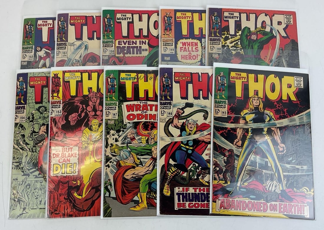SoldMarvel Comics The Mighty Thor (1966-1968) (12)Marvel Comics The Mighty Thor #127, #130 (x2), #131, #132, #133, #135, #145, #146, #154, #156, #157 (1966-1968) (12 Comic Books Total). Story by Stan Lee. Art & Illustrations by Jack Kirby. Cover by JSee Sold Price