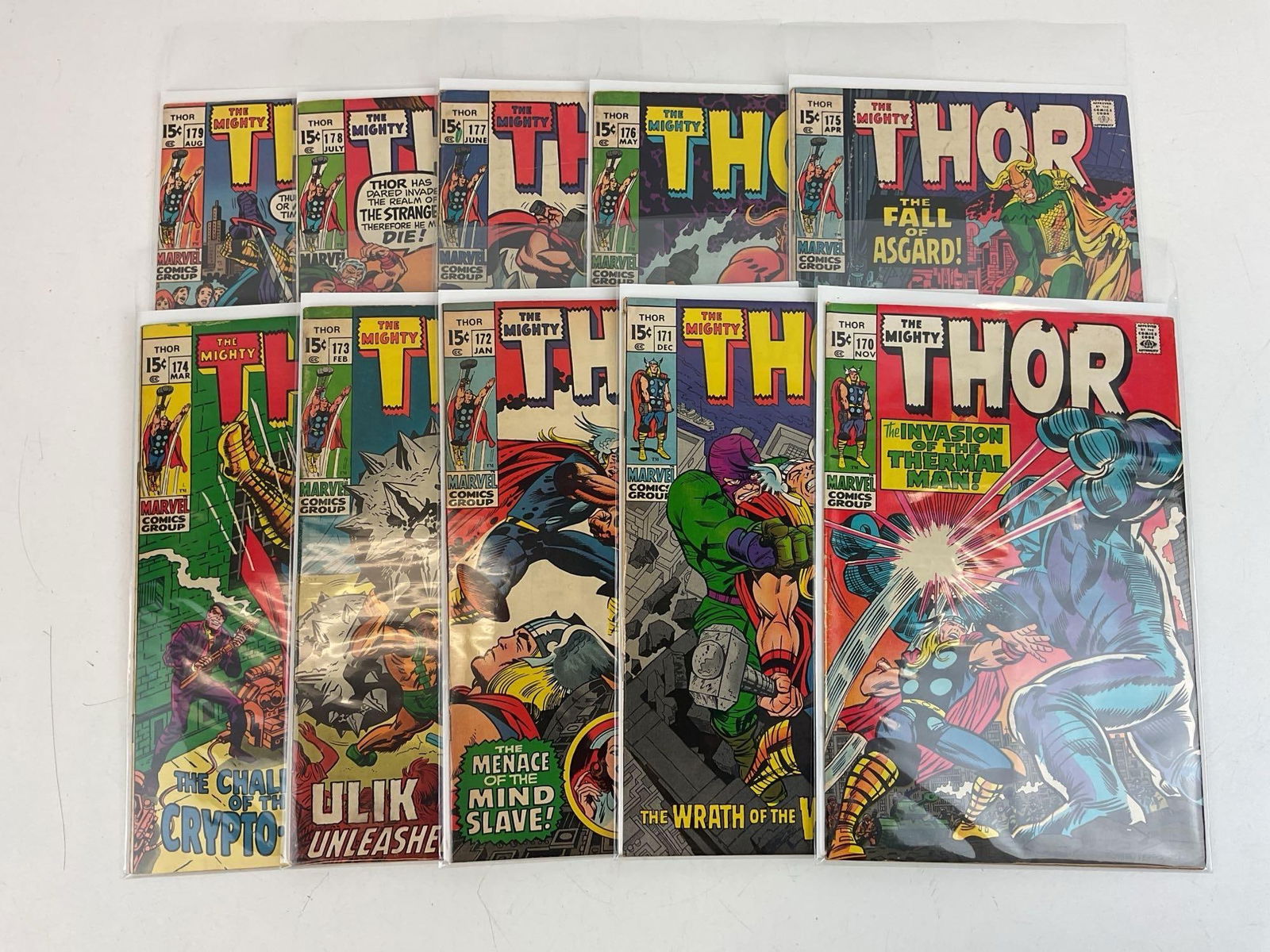 Sold(8) Mighty Thor #168-181 Marvel Comics (1966)8 Marvel Comics The Mighty Thor (1966) comic books. Issues include #168, 170, 172-175, 179, and 181. Published 1969-1970. Includes key issues. All are bagged and carded.See Sold Price