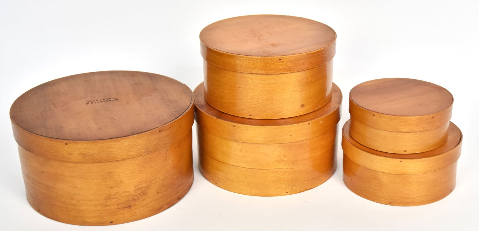Antique Lot of Two Top Hats - Rogers Peet & Co and Balch Price Co FoldingMar 22, 2026Lot of 2 miniature round finger lapped pantry boxes - attrib Hingham - 1 1/2" tall x 2 1/2" diam & 1Mar 22, 2026Treen Barrel Form String Holder1 day LeftSTACK OF TEN SHAKER STYLE PAINTED BENTWOOD AND FINGER-LAPPED BOXES, INCL. FOUR MARTY TRAVISMar 19, 2026FOUR AMERICAN FIRKINS. Largest (not including handle), 12"h. 12"dia.Mar 19, 2026Three American Bentwood Pantry Boxes3 days LeftFOUR AMERICAN WOOD BOXES, INCL. MAHOGANY AND MARQUETRY EXAMPLE. Largest, 4.5''h. 9.25" w. 4.5''d.Mar 19, 2026TWO AMERICAN PAINTED BENTWOOD PANTRY BOXES. Green, 3.5"h. 7.25"d. Red, 2.75"h. 6.85"d.Mar 19, 2026TWO AMERICAN PAINTED BENTWOOD PANTRY BOXES. Largest, 4"h. 8.75"d.Mar 19, 2026THREE AMERICAN STAVED AND FINGER-LAPPED FIRKINS. Largest, 11"h. 12"d.Mar 19, 2026