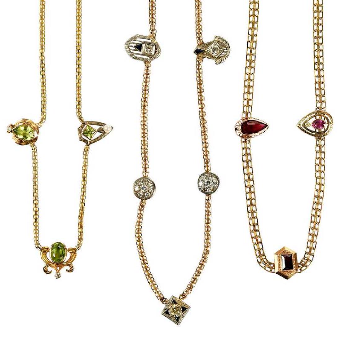 Three 14kt. Gemstone Necklaces