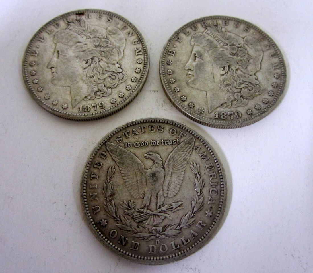 Three 1879 Silver U.S. "Morgan" Dollar Coins