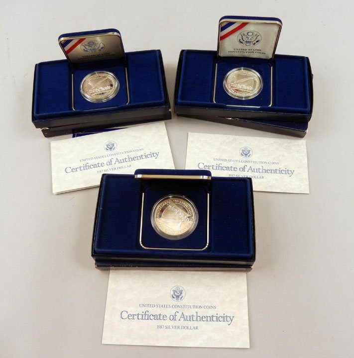 Three 1987 U.S. Constitution Coins proof silver dollars