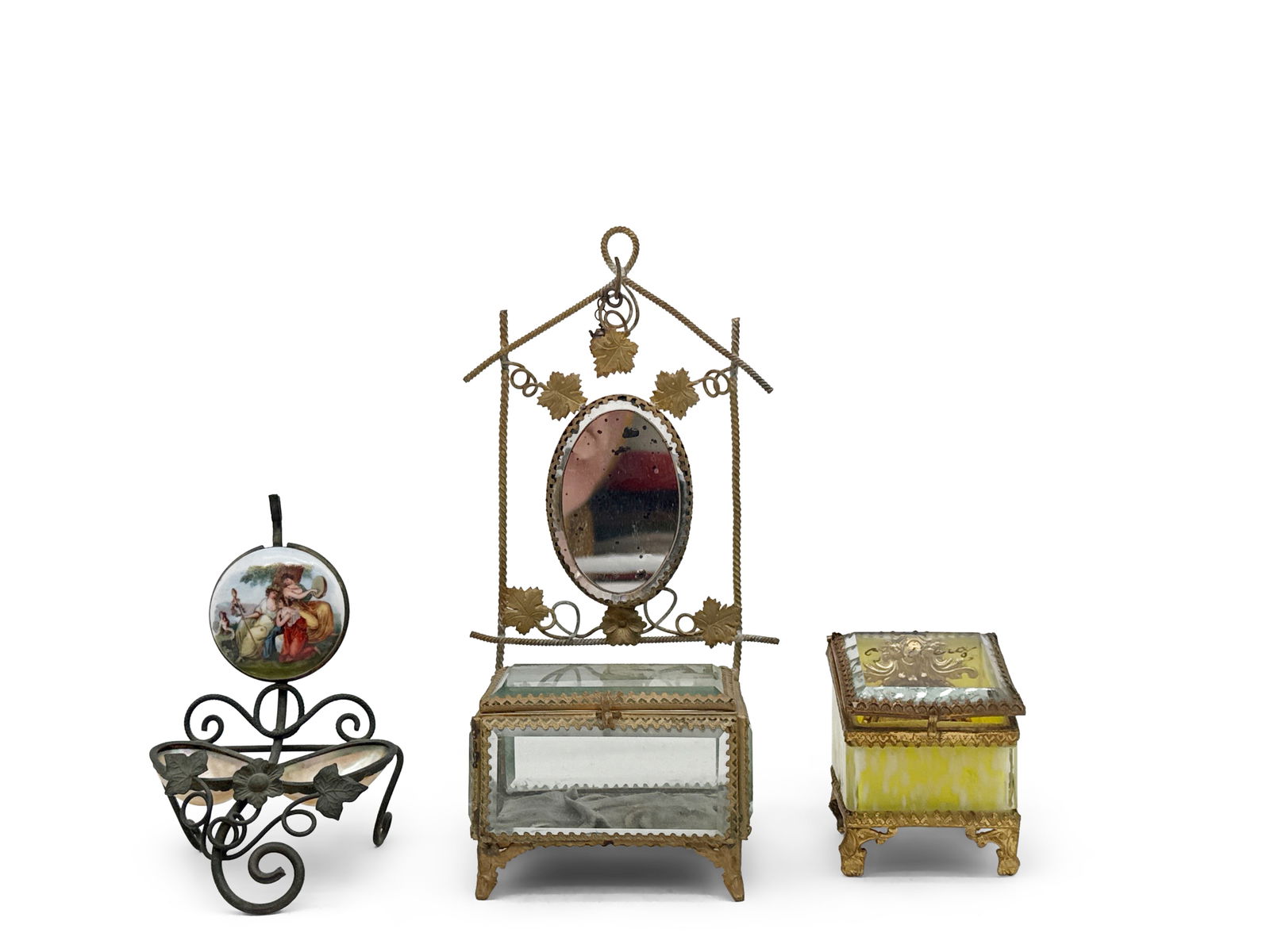 4PC LOT OF FURNISHINGSMar 07, 2026LOT ANTIQUE BRONZE BOXES, VANITY ITEMS, ETCMar 07, 2026Onyx, Porcelain & Enamel Trinket Boxes 4pc LOT2 days LeftLot of 2 Small Antique Clocks, inc. Carriage.4 days LeftA lot of three variously decorated cut crystal and opaline glass objects344 Lots AwayA composed lot of three Italian majolic style polychrome decorated and glazed ceramic objects343 Lots AwayA lot of four French La Vallée Paris and Sèvres-style decorated porcelain tableware objects255 Lots AwayEstee Lauder Dunhill Ciner Limoges Compact Mirror2 days LeftEnamled Gilt Metal Miniature Furniture Suite2 days LeftThree Collectibles with Porcelain MiniaturesMar 05, 2026Various Items14 hrs LeftA Collection of Art Nouveau Style Jewelry and Trinket Boxes5 days LeftTwo antique French ormolu mounted glass and porcelain jewelry caskets/ trinket boxesMar 15, 2026Guarniture with mantel clock and two candelabra France, 1871171 Lots Away3 Piece French Japonisme Gilt Bronze Mounted Enameled Porcelain Clock GarnitureMar 15, 2026A grouping of 4 antique French Sevres/ Sevres style ormolu mounted porcelain dresser boxesMar 15, 2026