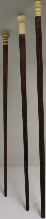 THREE 19TH C SCRIMSHAW WHALEBONE CANES. ONE