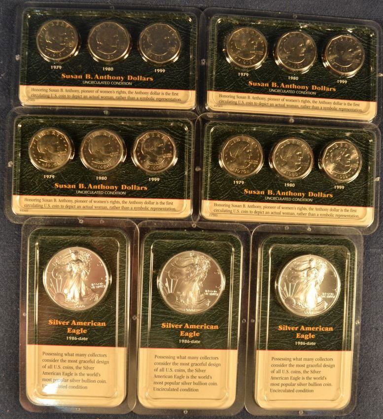 Lot Of 14 Mixed Date United States Silver American Eagle 1 Ounce .999 Fine Silver DollarsFeb 27, 20261979-81, 1999 Susan B. Anthony $1 Dollar Coins in Display.5 days LeftAmerican Silver CoinsFeb 25, 20262001 American Silver Eagle $1 Bullion Coins, 3Feb 26, 20262002 (W) American Silver Eagle $1 Bullion (BU), 3Feb 26, 20262001 (W) American Silver Eagle $1 Bullion (BU), 3Feb 26, 20262002 (W) American Silver Eagle $1 Bullion (BU), 3Feb 26, 2026A Set of Susan B. Anthony Uncirculated Mint Mark Dollars, 1979-1980Mar 12, 2026Fine Silver (0.999) Coin Assortment7 days LeftSet of 4 2003-W Proof Platinum American Eagle Bullion Coins5 days LeftProof American Silver Eagle $1 Bullion in OGP, 3Feb 26, 20262002 U.S. American Eagle Proof Platinum Four-Coin SetFeb 27, 2026Bullion Group: American Gold and Silver EaglesMar 10, 2026(2) 2009 United States Mint Silver Proof SetsFeb 27, 2026ASSORTED 1999-2003 FINE SILVER AMERICAN EAGLES(4)Mar 07, 20264pc U.S. Mint 1990, 1996, and 2000 Minted Coin Sets2 days Left