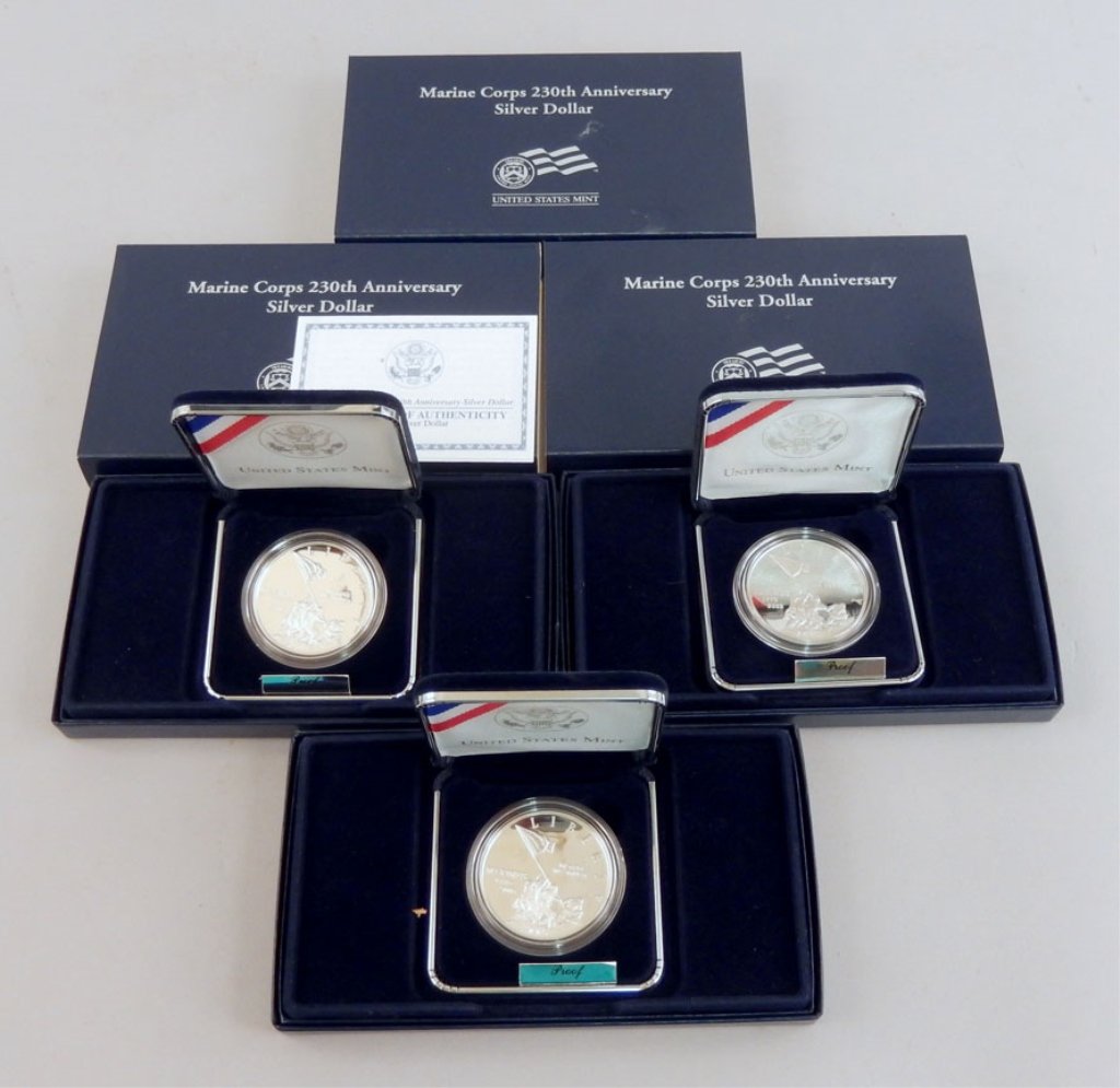 Three 2005 Marine Corps 230th Anniversary proof silver