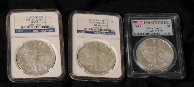 Lot of 2020 PCGS MS69 Certified American Silver Eagles First Strike .999 75 hrs LeftLot of 4 1oz American Silver Eagles, NGC MS-69 (2) and MS-70 (2)Mar 28, 2026Lot of 4 1oz American Silver Eagles, NGC MS-69, MS-70 (2), and PR-70Mar 28, 2026US 2021 $1 Silver Eagle Trio, SilverApr 16, 2026US 2020-2021 $1 American Silver Eagle TrioApr 16, 2026US 2001, 2013, and 2014 $1 American Silver EaglesApr 16, 2026US Trio of 2021-2023 $1 Silver EaglesApr 16, 20263 Piece 2021 Silver Eagle Proof Set ANACS PR70 DCAM Types 1 and 26 days LeftGroup of 4 American Silver Eagle 1 oz .999 Fine Silver CoinsMar 28, 2026Group of 3 American Silver Eagle 1 oz .999 Fine Silver PCGS Graded MS70Mar 28, 2026A Trio of US 2013-2016 American Silver Eagle $1Apr 16, 2026Group of 5 American Silver Eagle 1 oz .999 Fine Silver CoinsMar 28, 2026US MINT 2010 EARLY RELEASE SILVER EAGLE NGC MS 69Apr 05, 2026Group of 5 American Silver Eagle 1 oz .999 Fine Silver PCGS Graded MS70Mar 28, 2026U.S. SILVER COINS, DOLLARS, & MORE COLLECTION6 days LeftAmerican Eagle 25th Anniversary Silver Coin Set, 2 PCGS PR-69 and 3 PCGS MS-69Mar 28, 2026