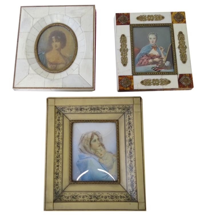 Lot 14+ Assorted Wooden, Pewter & Gilt FramesMar 04, 2026Lot 7 Glassi+ Picture Frames USA13 hrs LeftLot of Seven Gilt Metal Picture FramesMar 14, 2026Lot of 4 Vintage Framed Women Portrait5 days LeftA lot of four antique hand-painted wooden framed portrait wall miniatures187 Lots AwayASSORTED AMERICAN / EUROPEAN GILT AND OTHER FRAMES, LOT OF NINEMar 06, 2026ASSORTED ITALIAN / EUROPEAN GILT AND OTHER FRAMES, LOT OF THREEMar 06, 2026A lot of three antique hand-painted and inlay framed portrait wall miniatures185 Lots AwayASSORTED AMERICAN OR ENGLISH GILTWOOD AND OTHER FRAMES / MIRRORS, LOT OF FOURMar 06, 2026A lot of three antique hand-painted and brass framed portrait wall miniatures186 Lots AwayLOT OF VICTORIAN OVAL FRAMES2 days LeftFour Miniature Oval Portraits on cellulose2 days LeftHand Painted European Miniatures14 hrs LeftTHREE ANTIQUE MINIATURE PORTRAIT PAINTINGSMar 07, 2026European Hand-Painted Miniatures14 hrs LeftFOUR ANTIQUE MINIATURE PAINTINGS ON PORCELAINMar 07, 2026