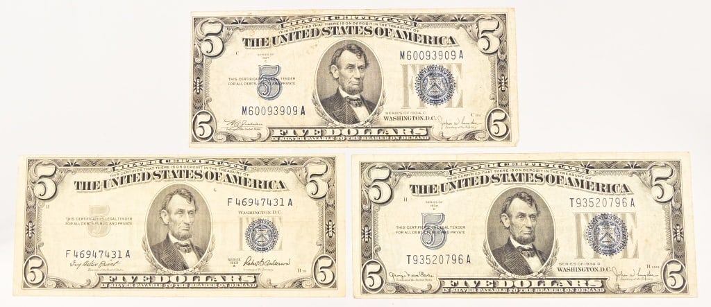 Three $5 Silver Certificates