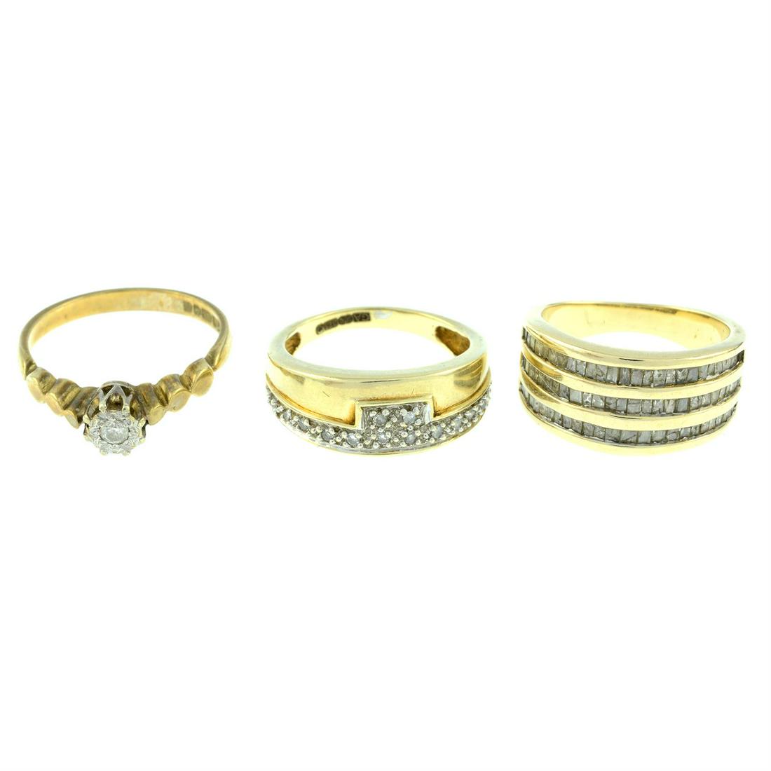 A group of three 9ct gold rings,Feb 25, 202614K Yellow Gold Diamond 1/2 Ct.Tw. Fashion RingFeb 25, 202610K & 9K GEM & DIAMOND RINGS 10.9gFeb 25, 202610K & 14K GOLD RING PAIRING 6.1gFeb 25, 202618K Yellow Gold 3.00 Ct. Diamond Ring5 days LeftA group of four diamond and gemstone set rings,Feb 25, 202614K Yellow Gold Diamond 1 1/5 Ct.Tw. Fashion Ring4 days LeftDiamond 1/4 Ct.Tw. Guard Ring in 10K Yellow Gold3 days LeftTRIO OF 10K DIAMOND RINGS 7.6gFeb 25, 20262.28 ctw 14K Yellow Gold Lab-Grown Diamond Ring VS1 Clarity1 day Left14K & 10K JEWELLERY GROUPING 6.4gFeb 25, 20264 Vintage Gold, Diamond, Sapphire & Moonstone RingsFeb 26, 2026TRIO OF 14K & 18K WHITE GOLD & DIAMOND RINGS 10.1gFeb 25, 202614k Yellow Gold Ring AssortmentFeb 24, 2026NEW 14K TWO TONE GOLD WEDDING TRIO RING SETMar 17, 20262 gold diamond rings. 1) 18K gold diamond pave ring. Set with 3 rows of graduated square cutMar 01, 2026