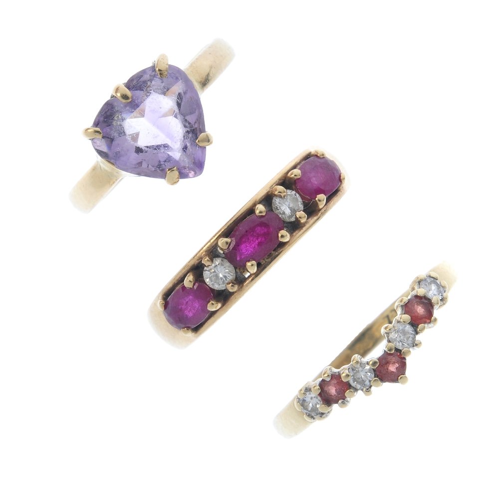 THREE GEM-SET AND DIAMOND RINGS * one with a circular-shaped ruby and four old-cut diamonds * ringAdam's Auctioneers4.3(12)€2007 days Left