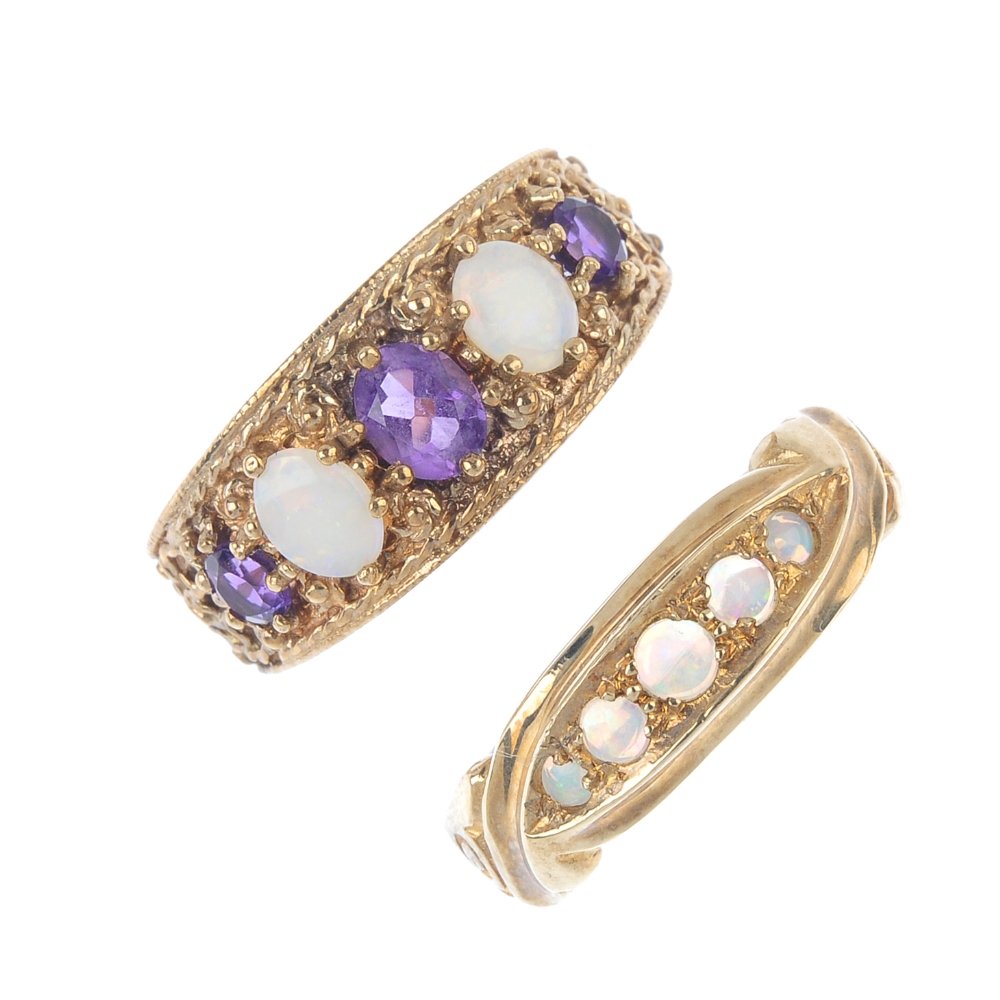 Three 9ct gold gem-set rings. To include an alternating